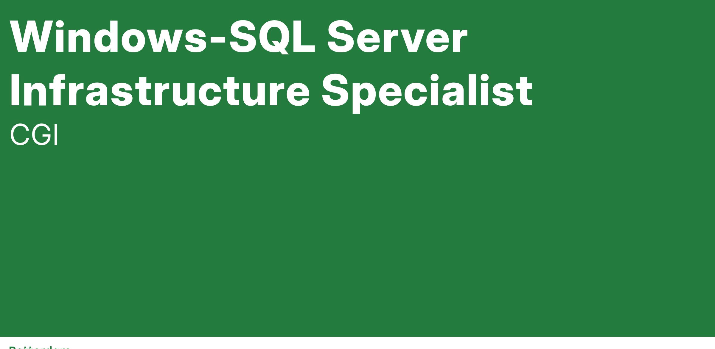Ben jij een ervaren Windows-SQL Server Infrastructure Specialist met passie voor je vak? Dan zoeken we jou!
